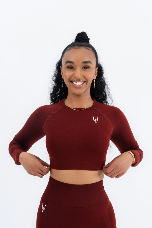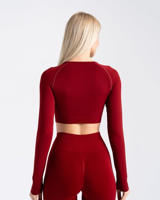 AusverkauftZenith Long Sleeve Crop Top "Dunkelrot"