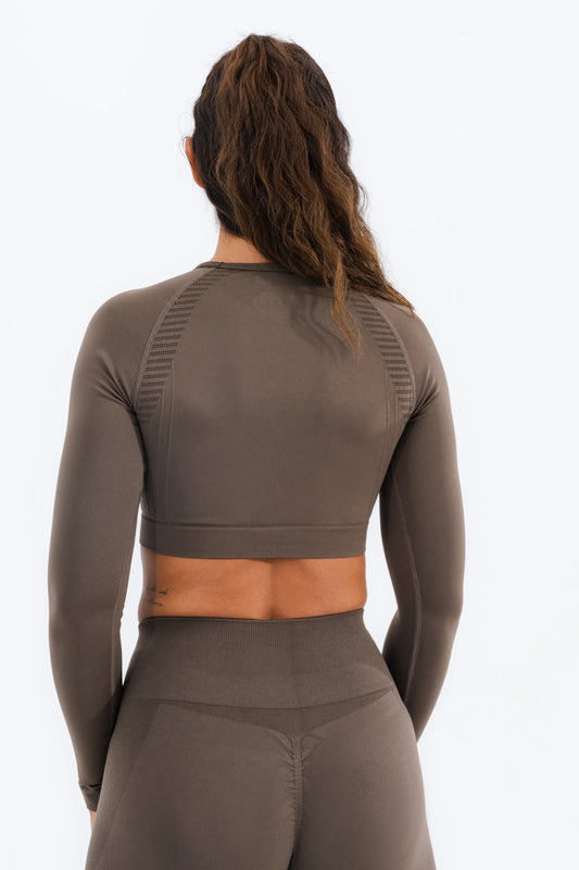AusverkauftZenith Long Sleeve Crop Top "Braun"