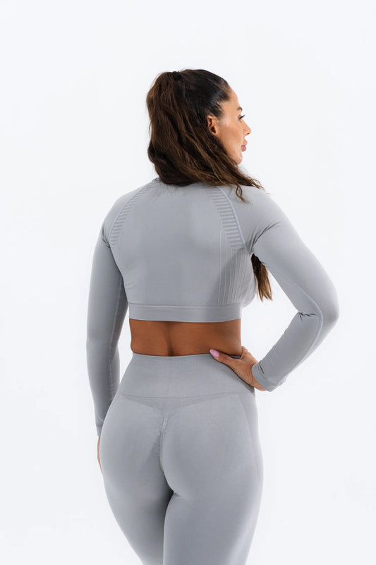 AusverkauftZenith Long Sleeve Crop Top "Grau"